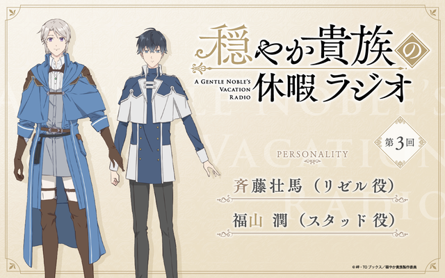 19:30 – 20:00 穏やか貴族の休暇ラジオ 斉藤壮馬、福山潤 放送中のTVアニメ『穏やか貴族の休暇のすすめ。』の公式ラジオ番組『穏やか貴族の休暇ラジオ』! 2月15日(日)19時30分~お届けする第3回の放送は、“リゼル”を演じる斉藤壮馬さんと“スタッド”を演じる福山潤さんがパーソナリティを担当します! メール投稿フォーム:https://form.joqr.co.jp/@joqr-odayaka 番組ハッシュタグ:#穏やか貴族の休暇ラジオ 【TVアニメ『穏やか貴族の休暇のすすめ。』】 アニメ公式HP: https://odayakakizoku-pr.com/ アニメ公式X:https://x.com/odayaka_pr 推奨ハッシュタグ:#穏やか貴族 もっと見る